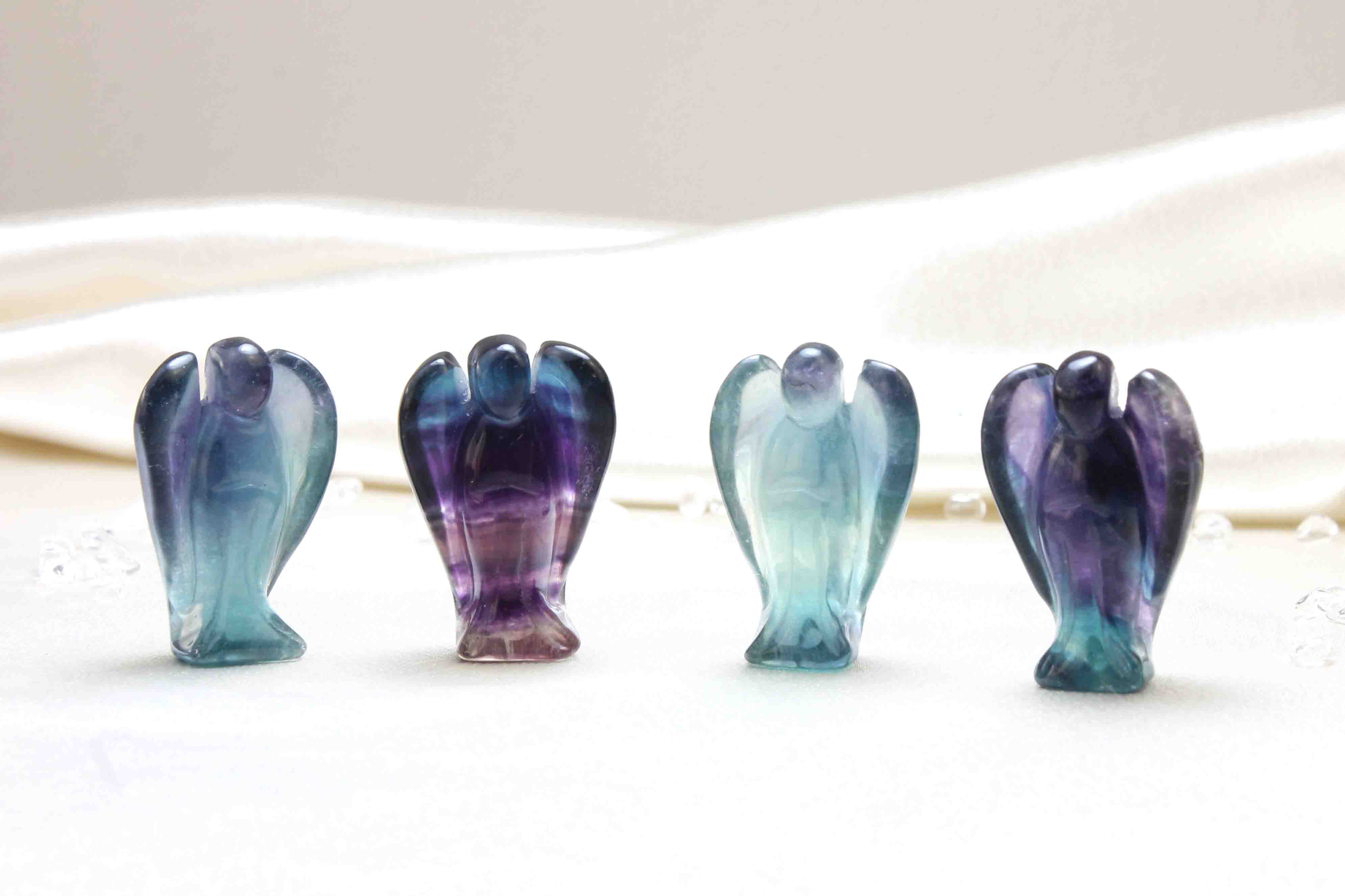 置物 フローライト彫り 天使 エンジェル 約3.5〜4cm 品番: 10256 [10256]