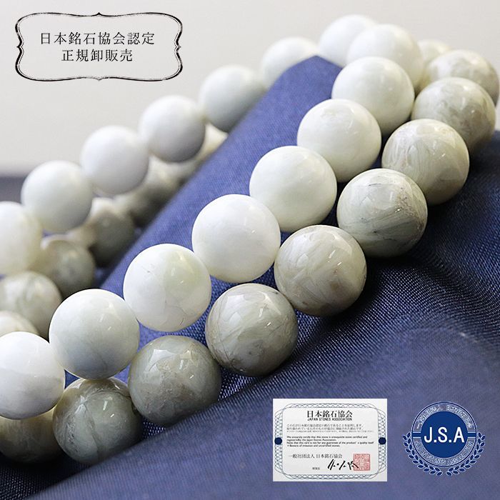 - > 【日本銘石】ブレス 糸魚川翡翠 〈新潟県〉 白 ホワイト 10mm 品番: 10743