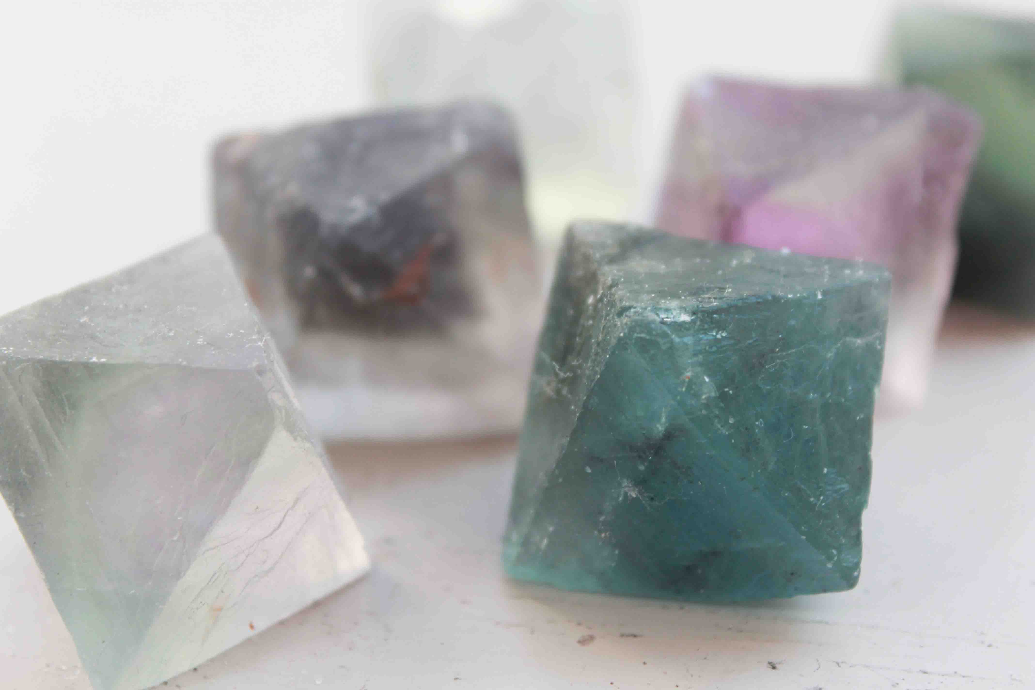 手のひらサイズのフローライト八面体のオーナメントです。