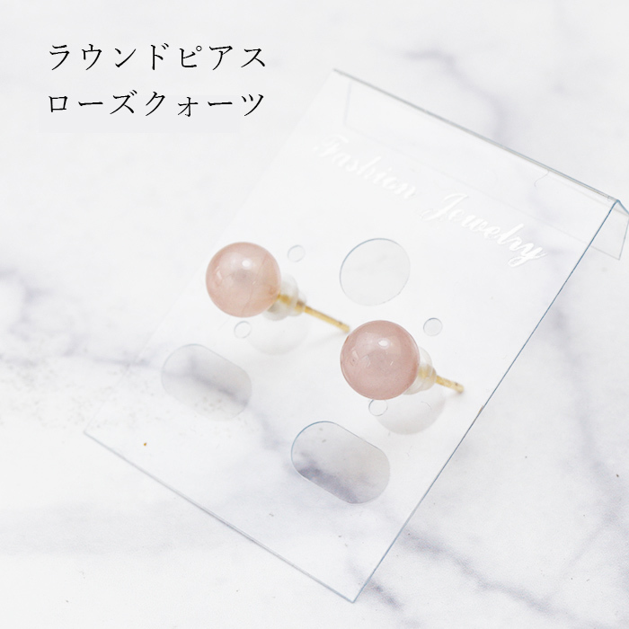 天然石ラウンドピアス ゴールド ピンク シンプル ローズクォーツ 恋愛 品番:12222 [12222]