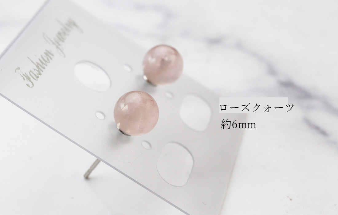 天然石ラウンドピアス シルバー ピンク シンプル ローズクォーツ 恋愛 品番:12224 [12224]