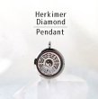 円型の金具ケースにハーキマーダイヤモンドの細石を閉じ込めたペンダントトップです。