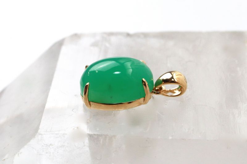 ペンダントトップ クリソプレーズ 18金ゴールド オーバル型 希望 幸福 勝利 守護石 一点物 品番:13081