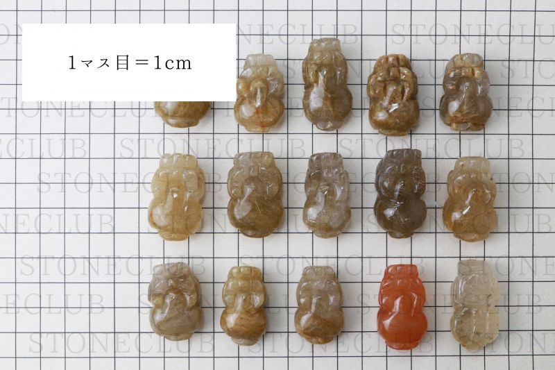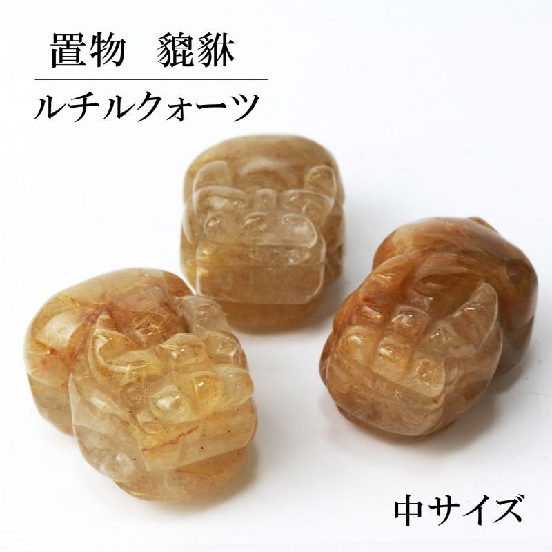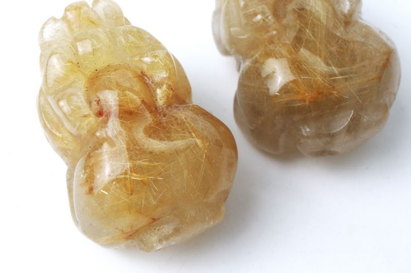置物 ルチルクォーツ ひきゅう 貔貅 中 ブラジル産 約29mmから36mm 金運アップ 風水 彫り物 品番: 13092 [13092]