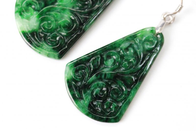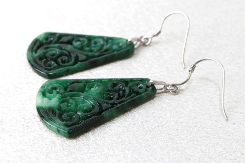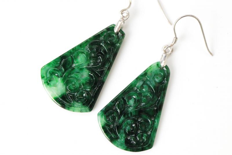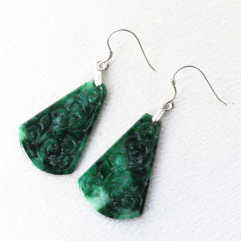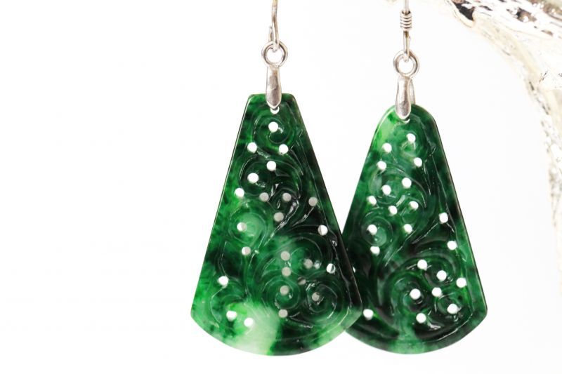 【一点物】ピアス 翡翠 扇 シルバー925 緑 グリーン ひすい 人生 成功 達成 お守り 品番:13381