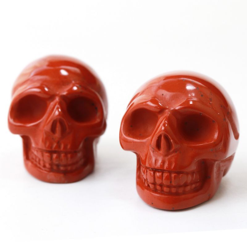 置物 彫り物 スカル 髑髏 ドクロ レッドジャスパー 赤 健康 行動力 決断力 判断力 エネルギー インテリア 天然石 品番: 13790