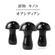 置物 彫り物 キノコ オブシディアン 黒 ブラック 魔除け インテリア 天然石 品番:13928 [13928]