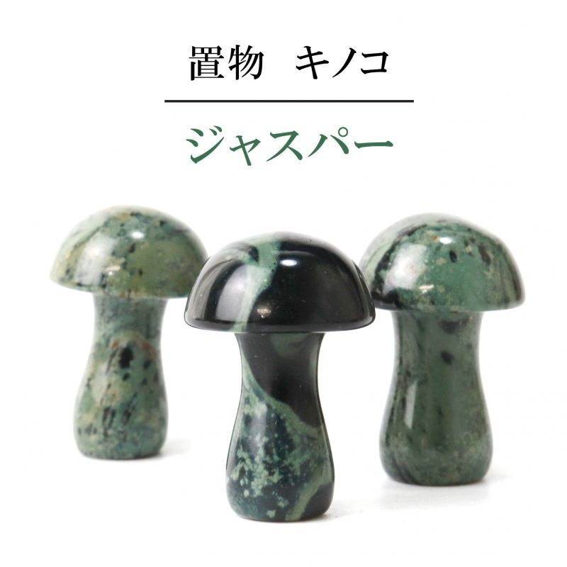 置物 彫り物 キノコ ジャスパー グリーン系 緑碧玉 広い視野 洞察力 自信 インテリア 天然石 品番:13934 [13934]