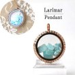 円型の金具ケースにラリマーの細石を閉じ込めたペンダントトップです。