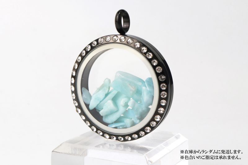 円型の金具ケースにラリマーの細石を閉じ込めたペンダントトップです。 ・素材:ラリマー、ステインレス ・サイズ:直径約30mm、厚み約6mm ◇「ラリマー」とは? ラリマーは、愛と平和のシンボルと…