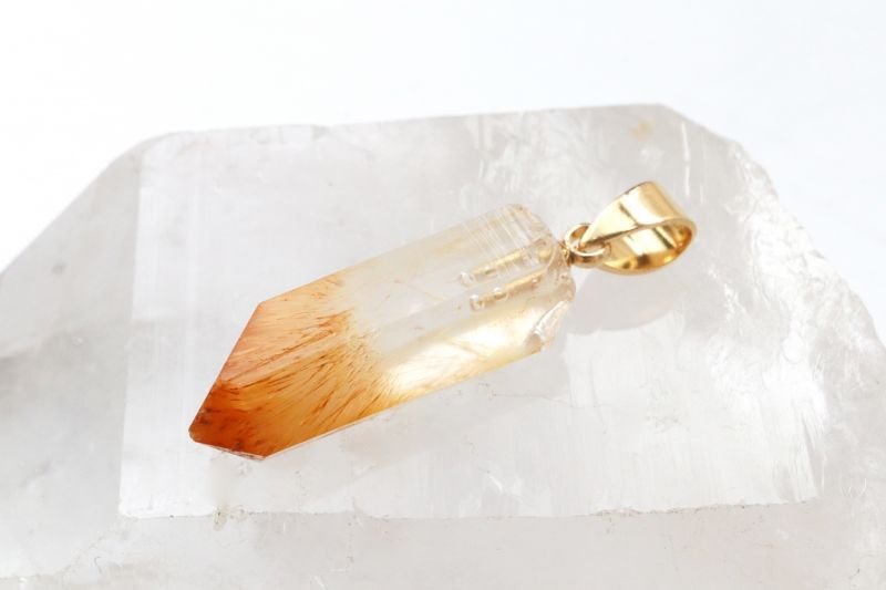 ペンダントトップ マンゴークォーツ ゴールド GL 癒し 元気 生命力 活性化 天然石 ジュエリー 希少 レア 品番:14261