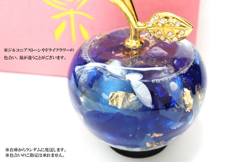 置物 ハーバリウム ミニリンゴ 青 ブルー ラリマー さざれ石入り 不安をやわらげる ヒーリング 創造性 風水 開運 運気上昇 浄化 アップル インテリア 品番: 15215 [15215]