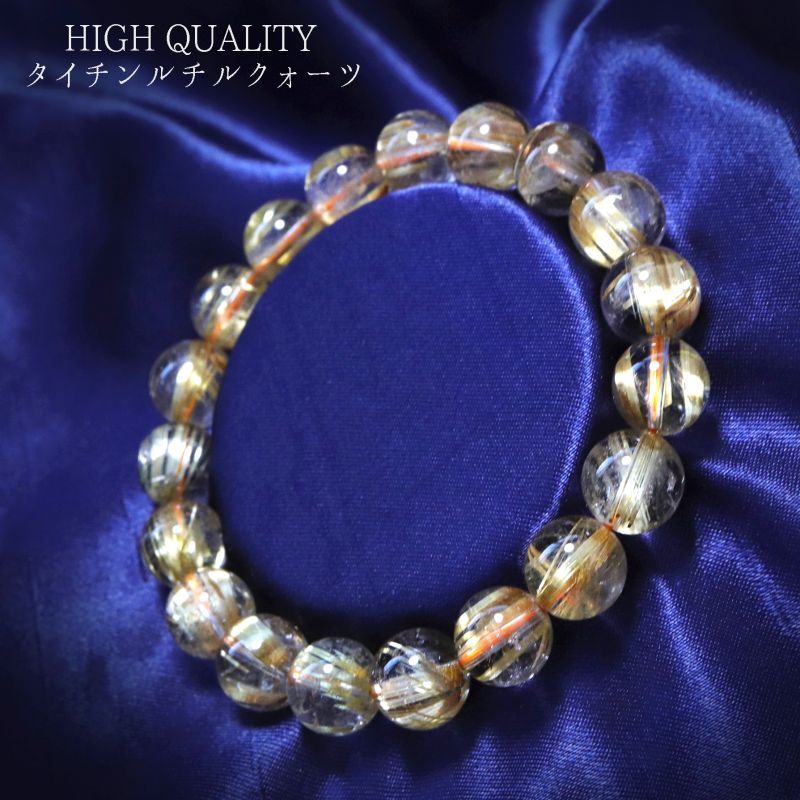 【一点物】 ブレス 高品質 タイチンルチルクォーツ 丸 約10.2mm ブラジル産 金運 仕事運 パワーストーン 天然石 品番: 15387