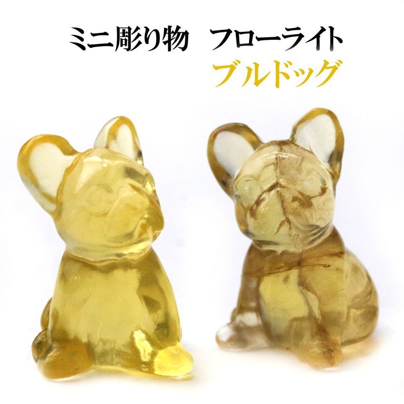 置物 ミニ彫り物 フローライト ブルドッグ 1個 忠義 邪気を払う 創造力 癒し 浄化 天然石 品番: 15466 [15466]