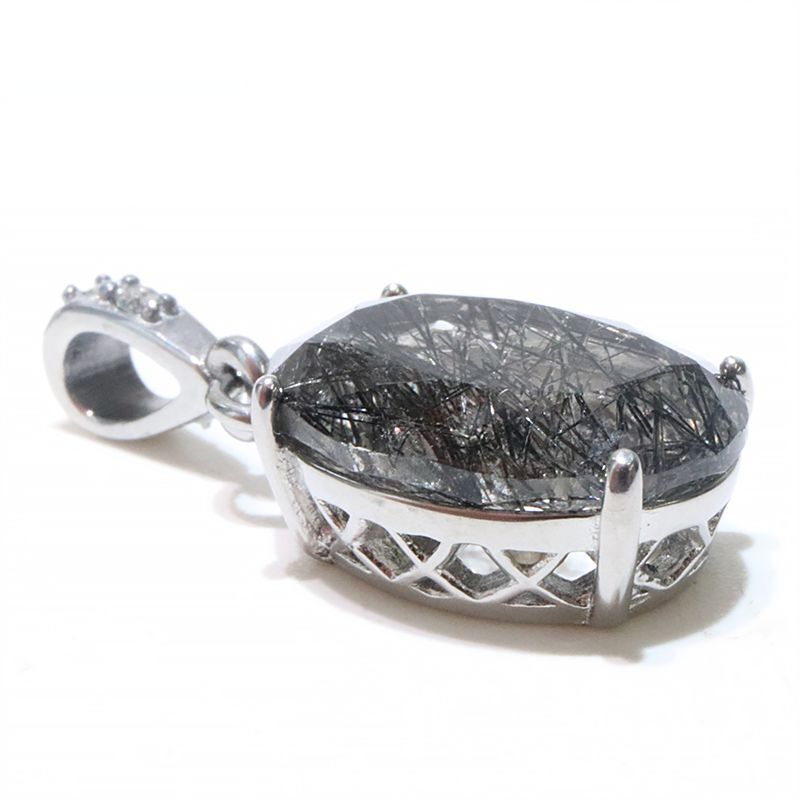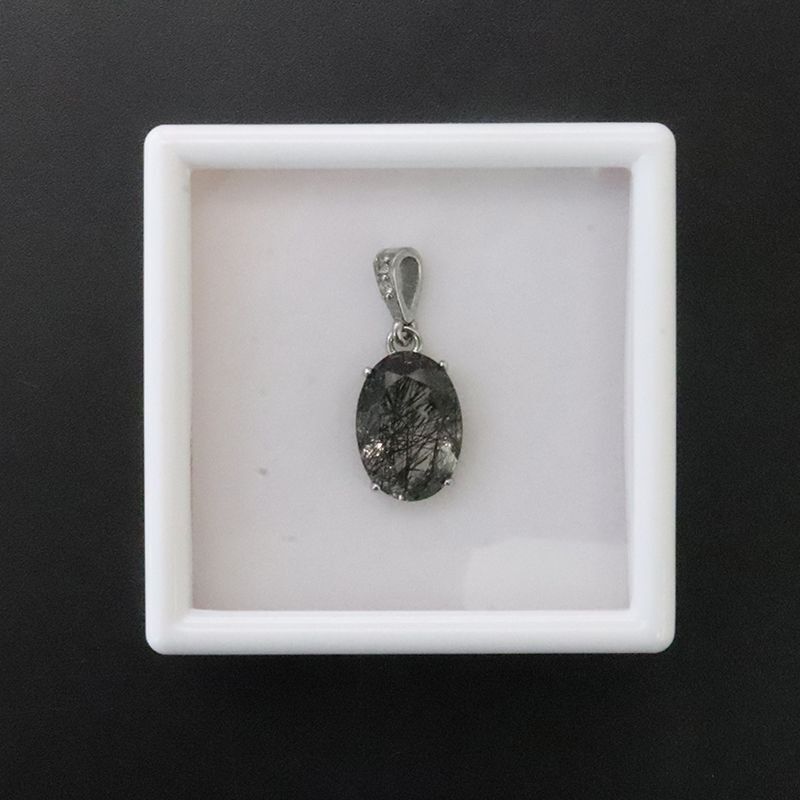 【自社製アクセサリー10点以上でクーポン使用後30%OFF対象商品(クーポン番号:AC30)】ペンダントトップ ブラックルチル オーバルハンドカット 約10×14mm ブラジル産 ケース付き ステンレス シルバー 日本製 浄化 パワーストーン 天然石 ※ポイント対象外 品番:16015