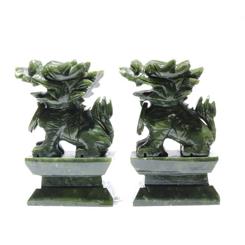 置物 彫り物 麒麟 岫岩玉 約13cm 中国産 一対 縁起物 平和 厄除け パワーストーン 天然石 品番:16445