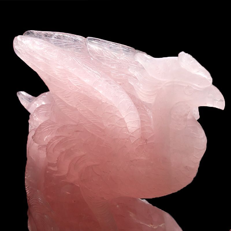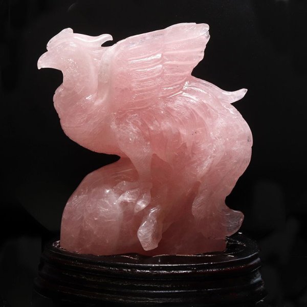 置物 ローズクォーツ 鳳凰 ブラジル産 台付き 風水 運気 金運 財運 浄化 クォーツ パワーストーン 天然石 品番:16999