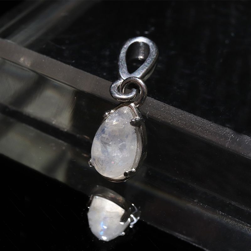 【自社製アクセサリー10点以上でクーポン使用後30%OFF対象商品(クーポン番号:AC30)】ペンダントトップ ムーンストーン ドロップカット 約6×9mm スリランカ産 ステンレス シルバー ケース付き 人間の情緒 社交性 喜び パワーストーン 天然石 ※ポイント対象外 品番:17088