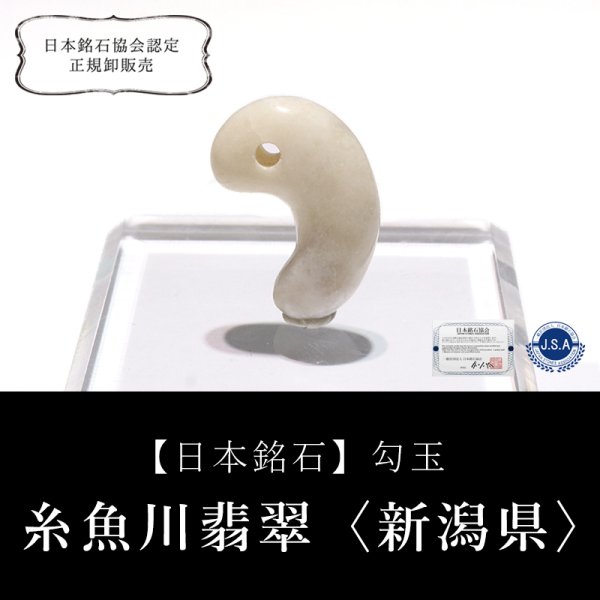 【日本銘石】勾玉 糸魚川翡翠<新潟県> 白 中 約25mm 証明書付き 穴あき 日本製 国石 安定 平穏 慈悲 智恵 パワーストーン 天然石 品番:17099 [17099]