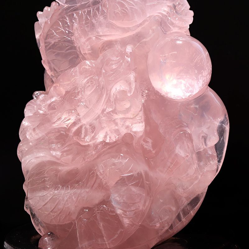 置物 ローズクォーツ 龍 ブラジル産 台付き 風水 運気 金運 財運 浄化 クォーツ パワーストーン 天然石 品番:17152