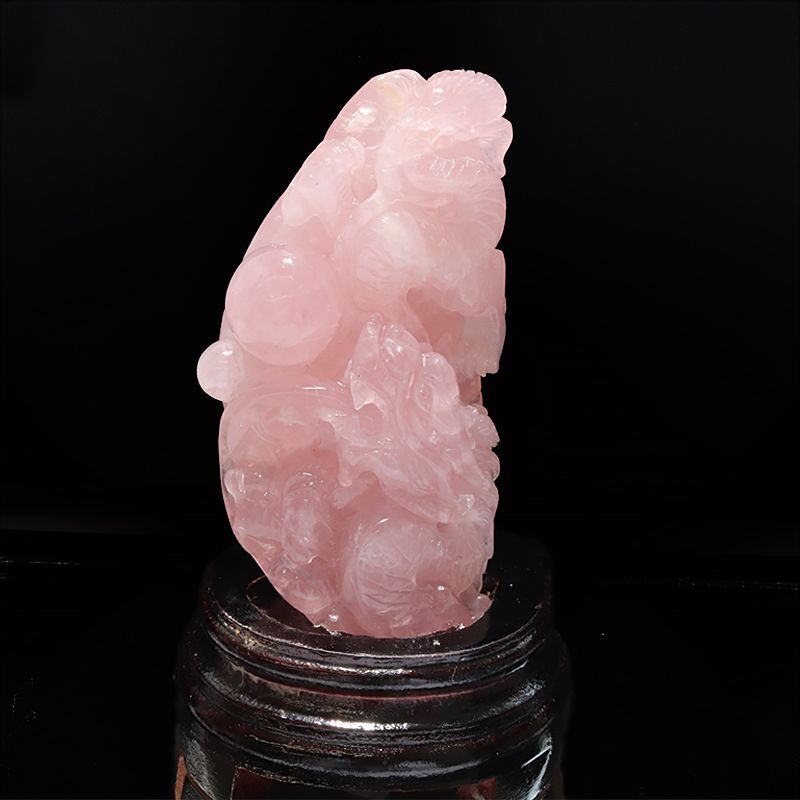 置物 ローズクォーツ 龍 ブラジル産 台付き 風水 運気 金運 財運 浄化 クォーツ パワーストーン 天然石 品番:17160