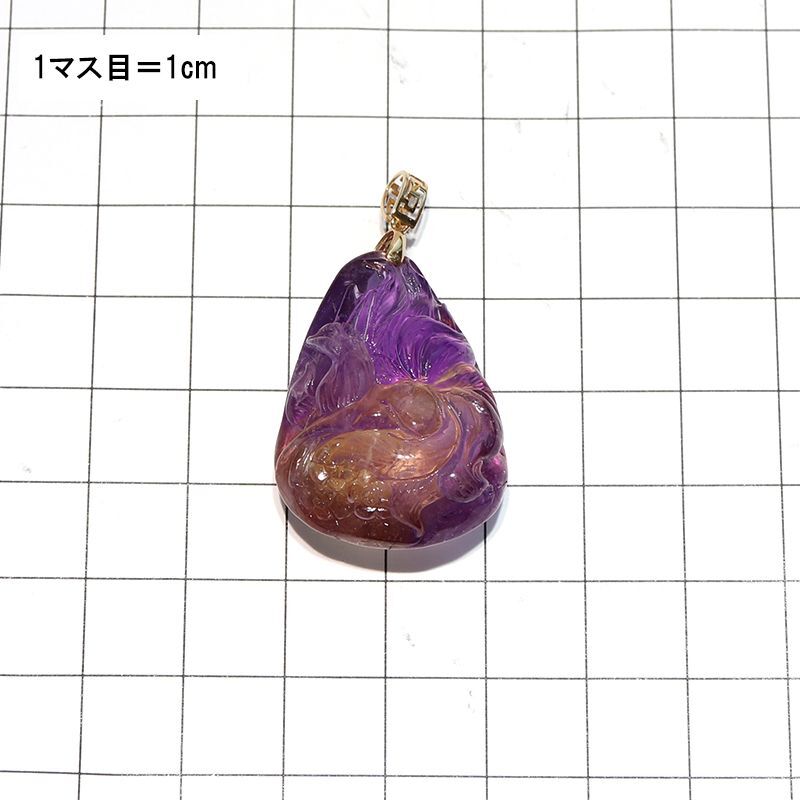 ペンダントトップ アメトリン 九尾の狐 約23×32mm ナミビア産 K18 癒し 浄化 パープル パワーストーン 天然石 品番:17181 [17181]