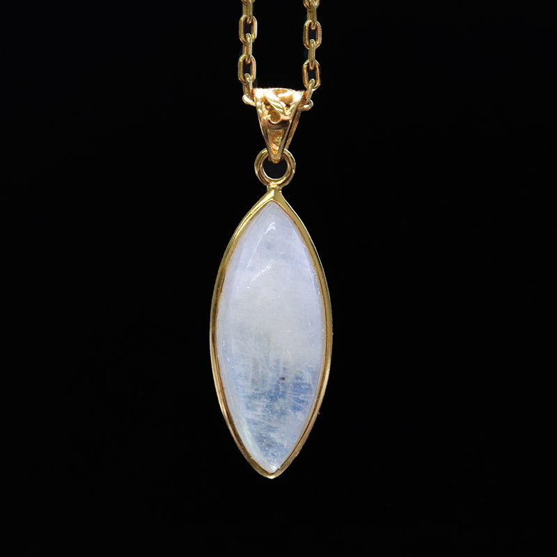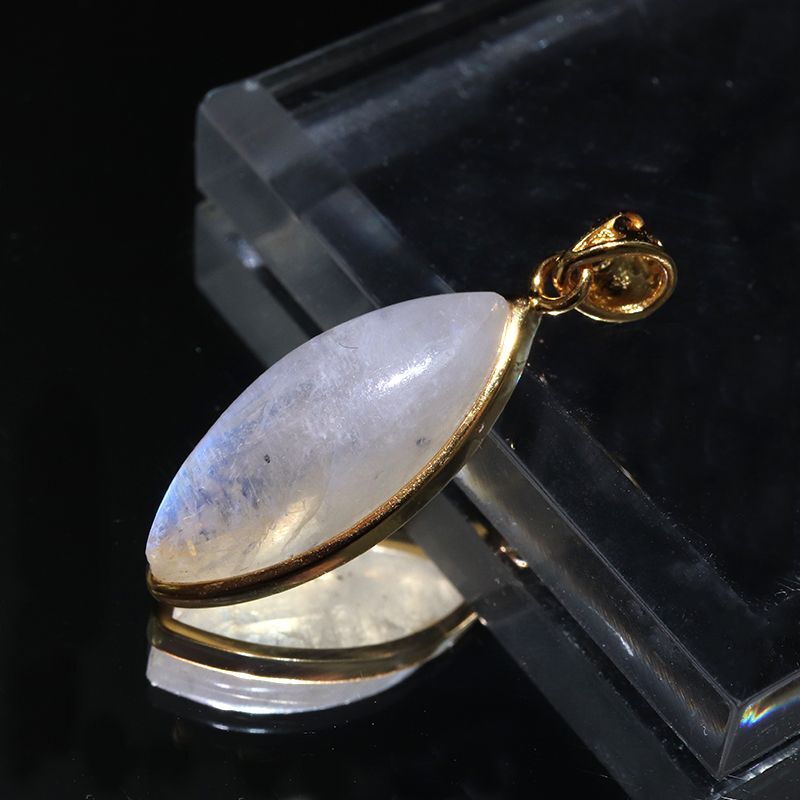 【自社製アクセサリー10点以上でクーポン使用後30%OFF対象商品(クーポン番号:AC30)】ペンダントトップ ロイヤルブルームーンストーン マーキスカット スリランカ産 silver925 ゴールド ケース付き 日本製 人間の情緒 社交性 喜び パワーストーン 天然石 品番:17200 [17200]