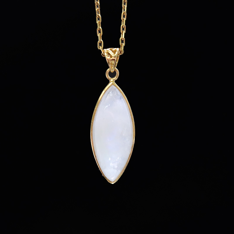 【自社製アクセサリー10点以上でクーポン使用後30%OFF対象商品(クーポン番号:AC30)】ペンダントトップ ロイヤルブルームーンストーン マーキスカット スリランカ産 silver925 ゴールド ケース付き 日本製 人間の情緒 社交性 喜び パワーストーン 天然石 品番:17201 [17201]