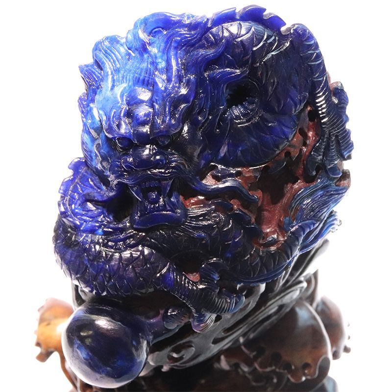 置物 ブルースギライト 龍 アフリカ産 手彫り 台付き エネルギー 健康 守る パワーストーン 天然石 品番:17332 [17332]