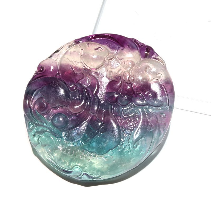 ペンダントトップ フローライト 登竜門 中国産 穴あり ケース付き 癒し 浄化 パワーストーン 天然石 品番:17815
