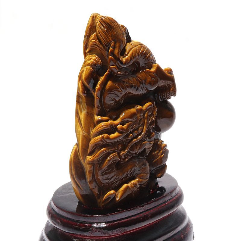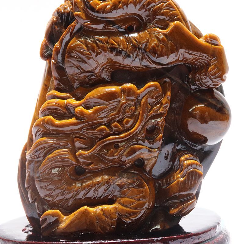 【一点物】置物 タイガーアイ 龍 アフリカ産 台付き 風水 家庭円満 出世 商運 財運 金運 仕事運 お守り パワーストーン 天然石 品番:17839
