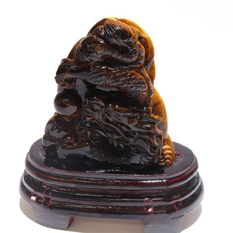 【一点物】置物 タイガーアイ 龍 アフリカ産 台付き 風水 家庭円満 出世 商運 財運 金運 仕事運 お守り パワーストーン 天然石 品番:17840