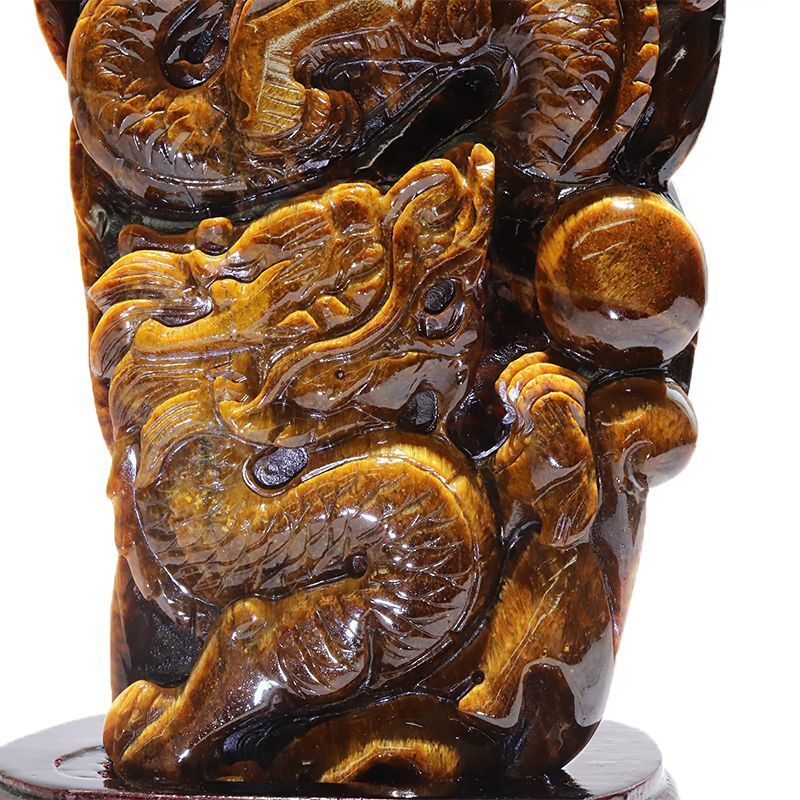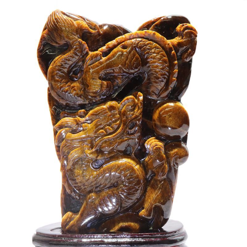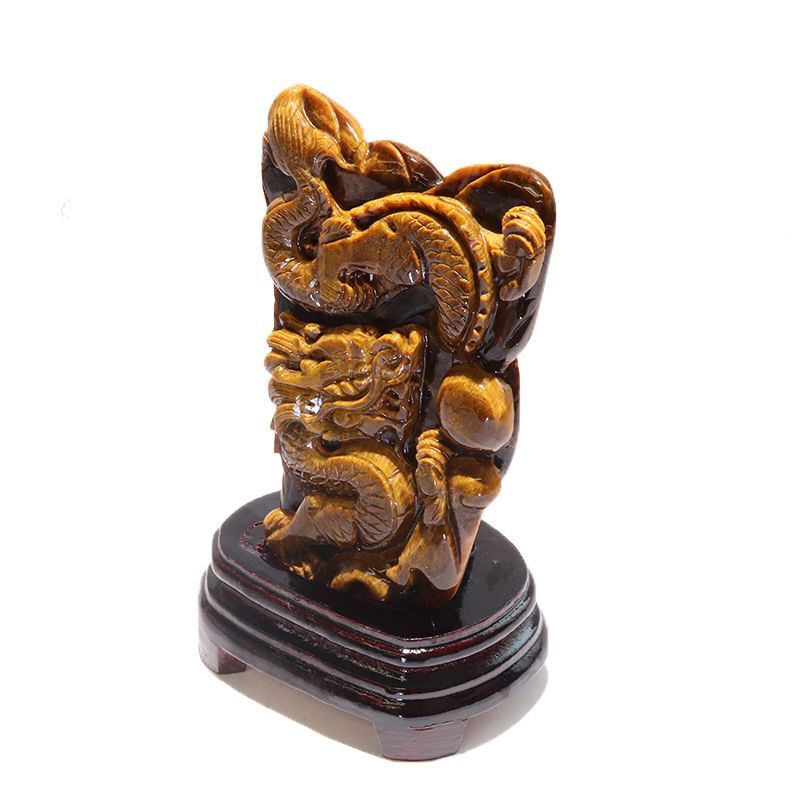 【一点物】置物 タイガーアイ 龍 アフリカ産 台付き 風水 家庭円満 出世 商運 財運 金運 仕事運 お守り パワーストーン 天然石 品番:17855