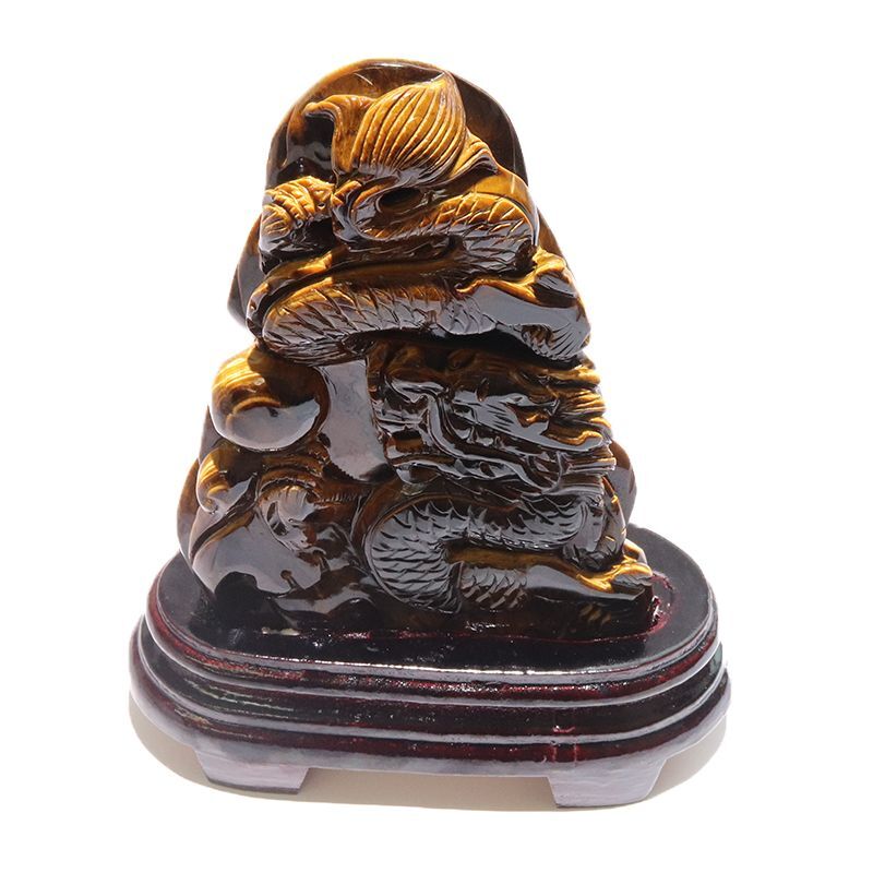 【一点物】置物 タイガーアイ 龍 アフリカ産 台付き 風水 家庭円満 出世 商運 財運 金運 仕事運 お守り パワーストーン 天然石 品番:17859