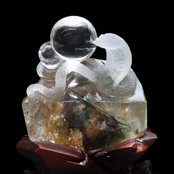【一点物】置物 ガーデンクォーツ 蛇 ブラジル産 干支 弁財天の眷属 台付き 癒し 心のヒーリング 精神安定 自然治癒力 パワーストーン 天然石 品番:17867 [17867]