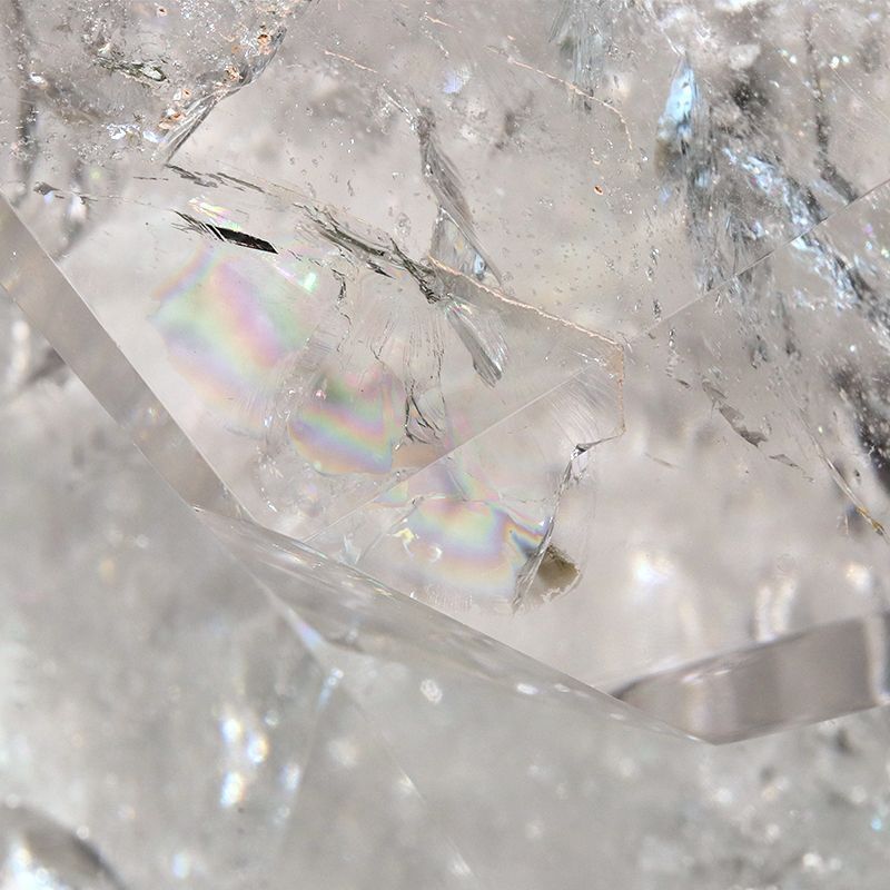アイリスクォーツは、水晶の仲間でクラックレインボーが入った水晶です。