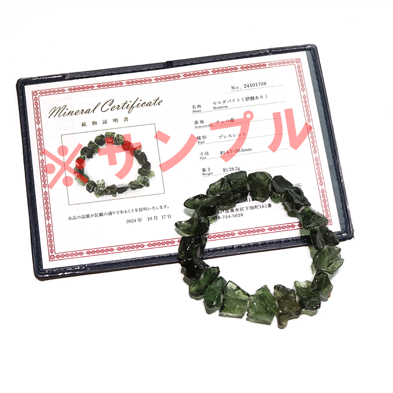ブレス モルダバイト<チェコ産> 原石 約4.7〜20.6mm 証明書付き 品番:18746