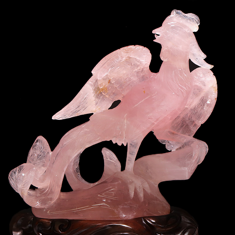 【一点物】置物 ローズクォーツ 鳳凰 ブラジル産 台付き 風水 品番:18843