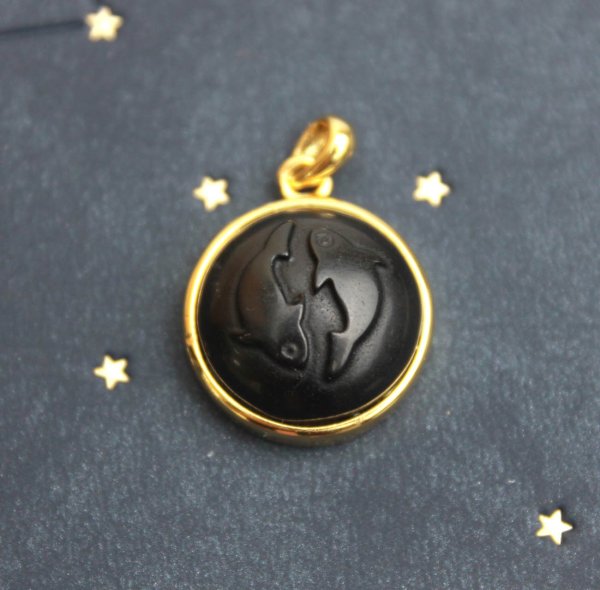 オブシディアン使用★星座のペンダントトップ うお座(GL枠) 品番: 6697