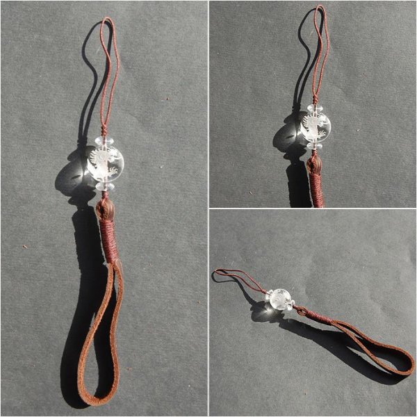 茶 革ひもストラップ 四神 青龍 水晶 16mm 品番:7013