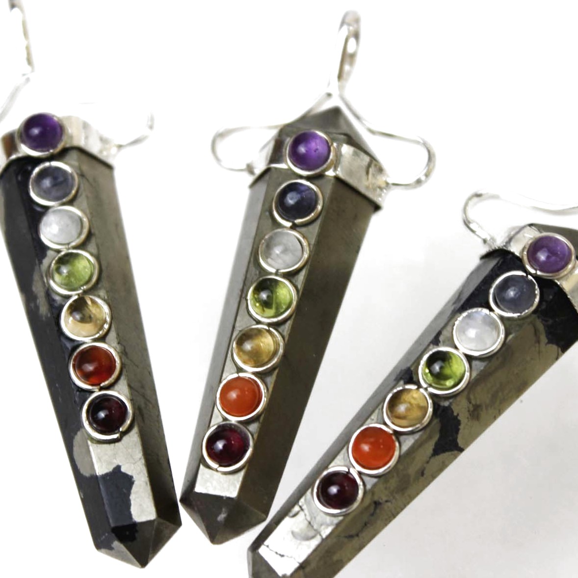 ペンダントトップ チャーム 六角すいセブンチャクラ パイライト 品番: 10137
