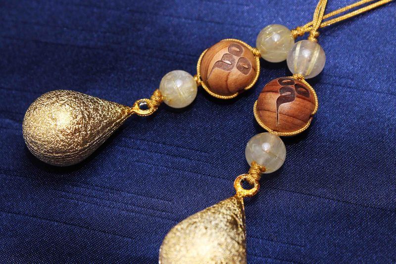 屋久杉使用 帝釈天 イー ルチルクォーツデザイン ストラップ 水琴鈴付き 品番: 10432