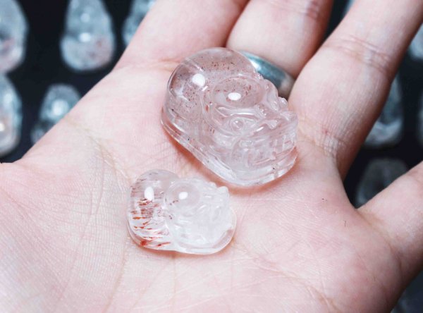 彫物 ヒキュウ彫り レピドクロサイトインクォーツ(穴あき) 約17mmから20mm 品番: 11669