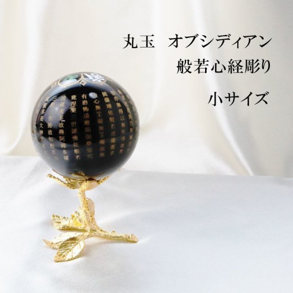 丸玉 オブシディアン 般若心経彫り 小サイズ 黒曜石使用 六字真言彫り 魔除け 人間関係 品番: 12490 [12490]