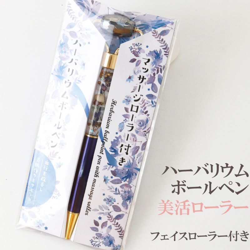 ハーバリウムボールペン 美活ローラー テラヘルツ カット ミッドナイト×ゴールド フェイスローラー付き マッサージローラー 天然石ローラー 品番: 13739 [13739]