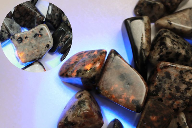 ブラックライトを当てると発光するように強いオレンジ色に輝きます。