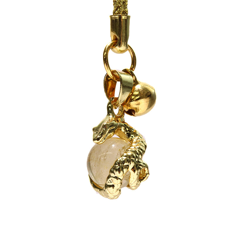 ストラップ ルチルクォーツ 蛇 へび 永遠 金運 仕事運 お守り 天然石 品番:14597