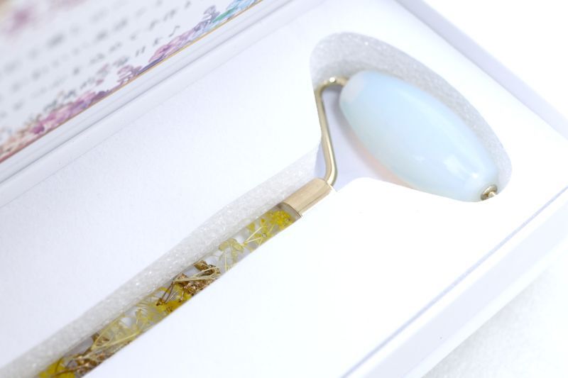 美活ローラー 合成ミルキークォーツ ハーバリウム マッサージローラー ゴールド GD ギフトボックス付き リンパマッサージ 小顔 プレゼント 品番: 14683