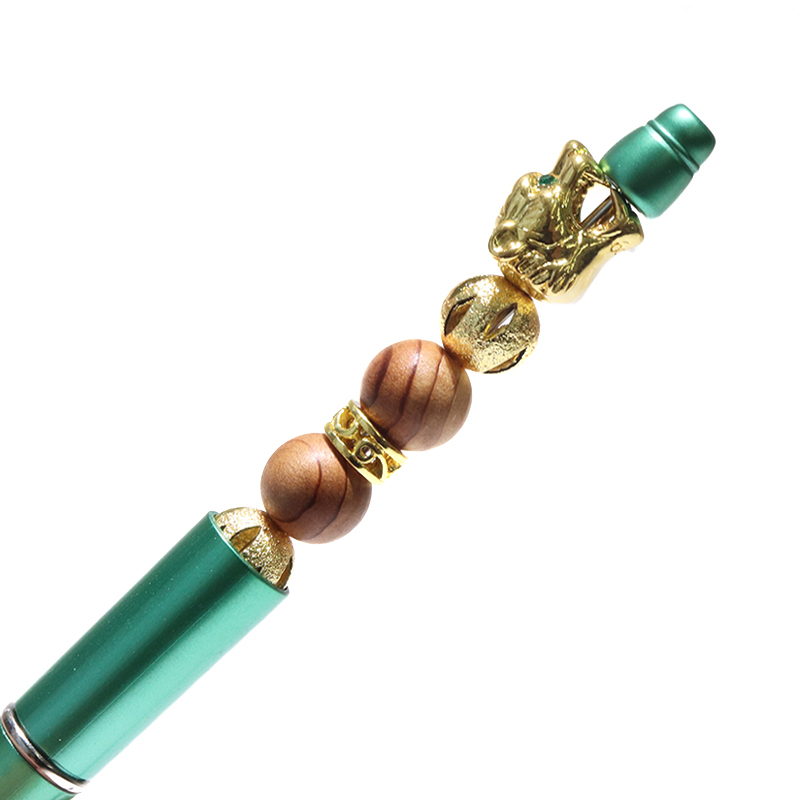 【現品限り】カスタムボールペン 虎〈ゴールド〉 本体グリーン 運気 上昇 繁栄 マイナスイオン 浄化 副資材 天然石 品番:16035