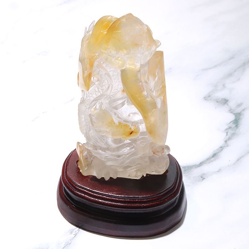 置物 ラビットヘアールチル 龍 ブラジル産 台付き 風水 運気 金運 財運 浄化 クォーツ パワーストーン 天然石 品番:17005